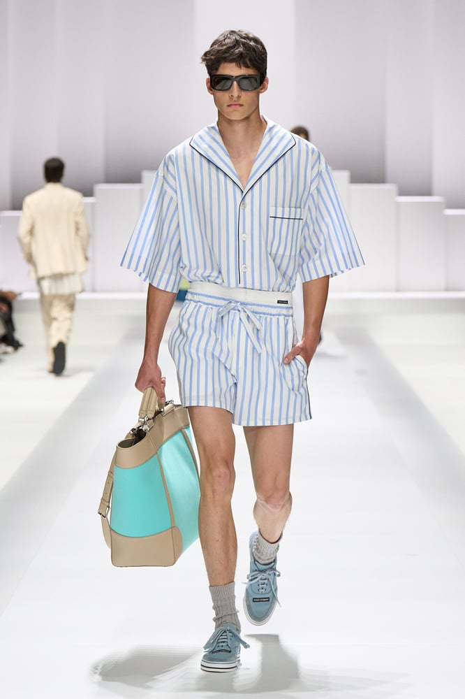Dolce & Gabbana pro SS 26 vytváří neformální, ale stylově propracovanou estetiku. Kolekce oslavuje pohodlí zároveň s nádechem oslavy – měkce strukturované kousky se hodí do města, na pláž i do domácího prostředí. Formálně-elegantní prvky, výšivky i textury přinášejí hravý luxus. Pyžama nejsou jen pro spaní – stávají se odvážným stylem každodenního života.