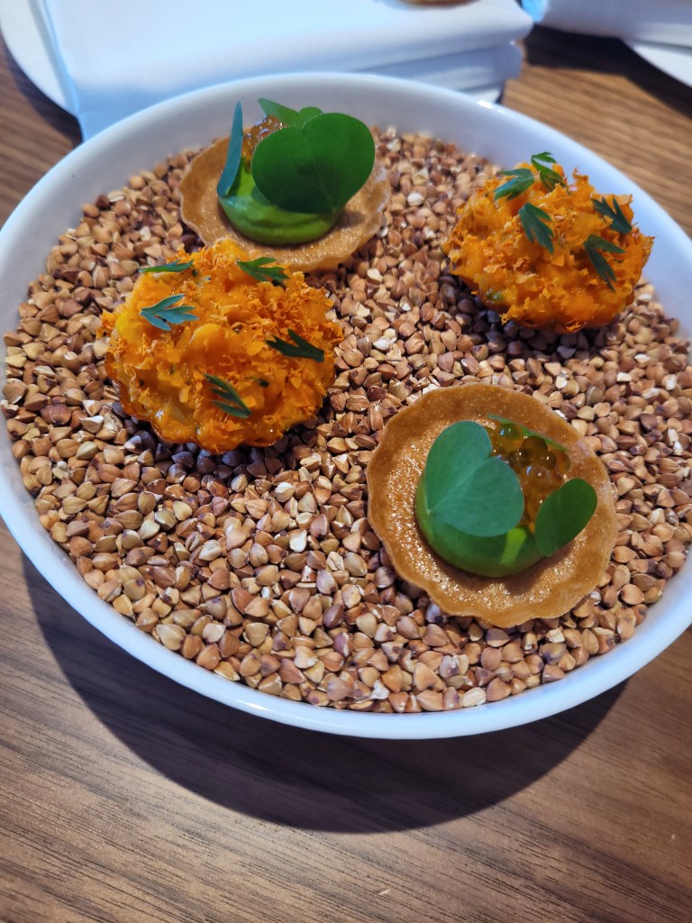 Zlatá Praha není jen o výhledu. Interiér restaurace je vkusně navržený – tlumené světlo, decentní barvy a kvalitní materiály vytváří atmosféru, která působí příjemně luxusně, ale přesto neformálně. Ideální pro první rande, oslavu výročí i tichý večer ve dvou.Restaurace se pyšní precizní kuchyní – podává sezónní, moderní evropská jídla s důrazem na kvalitu surovin a prezentaci. Nabízí vynikající degustační menu, které je zážitkem pro všechny smysly, a široký výběr skvělých nápojů včetně exkluzivních vín a autorských koktejlů.