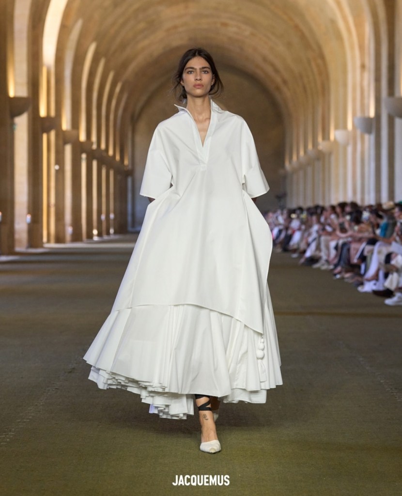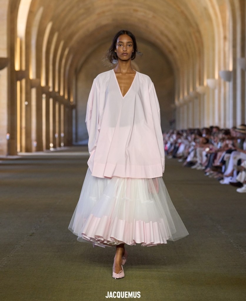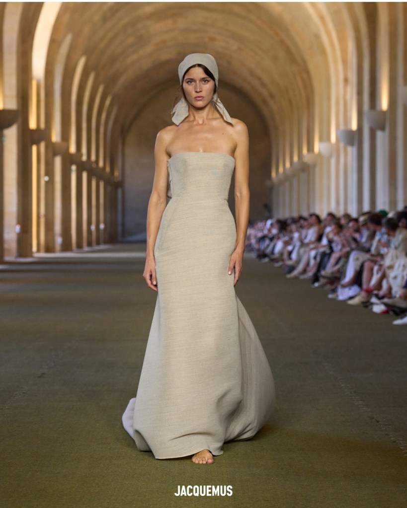 Jacquemus známý svou láskou k jižní Francii zasadil přehlídku do rustikální scenérie pod širým nebem. Venkovský motiv se odrazil nejen v atmosféře, ale především ve střizích, texturách a celkové náladě kolekce. Namísto opulentních vrstev a výstřednosti přišla jednoduchost, přirozenost a důvěrná poetika každodenního života.