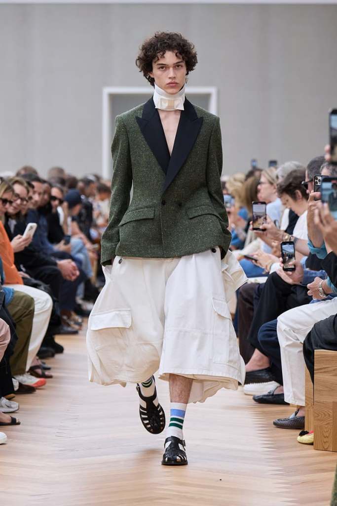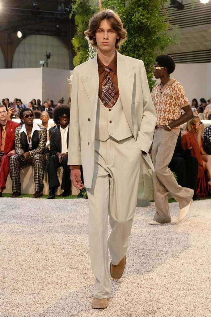 Jonathan Anderson, kreativní ředitel pánské linie Dioru, přinesl kolekci, která kombinuje tradiční elegance s moderními prvky. Jeho přístup je svěží a zároveň ctí dědictví značky, což vytváří nadčasovou estetiku.