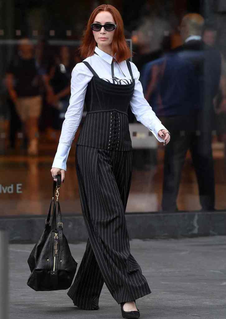 Emily Blunt se na scéně objevila s ohnivě červeným „lob“ účesem – odvážnější a zralejší verzí jejího někdejšího looku z roku 2006. Její outfit na place působil jako přímá odpověď na otázku, kam by se Emily Charlton vyvinula po dvaceti letech. Elegantní bílá košile Dior s výrazným logem, černé pruhované kalhoty Jean Paul Gaultier, korzet, futuristické diorovské brýle a kabelka D-Journey – to vše tvořilo outfit výkonné ženy, která už není jen stínem Mirandy Priestly.