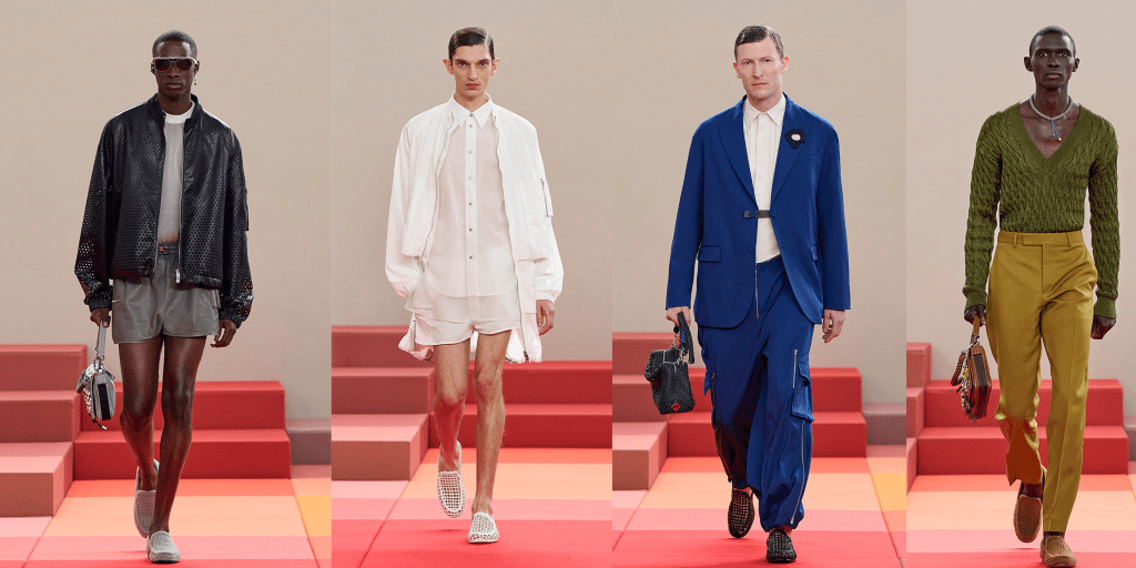 Prada v kolekci Spring/Summer 2026 redefinuje pojem moderní mužské elegance. Kůže se zde stává klíčovým statement prvkem – objevuje se na bundách, kabátech i detailech, které působí sebevědomě, ale nikoli okázale. Luxusní materiál je zbaven strnulosti a vstupuje do dialogu s lehkými letními siluetami.