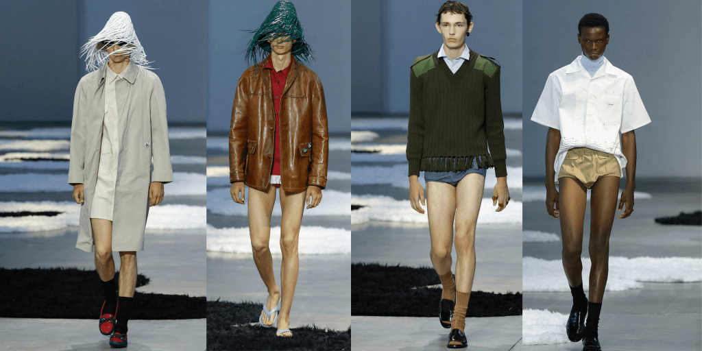 Prada – Kůže jako statement, ponožky v pantoflích a návrat 80. let