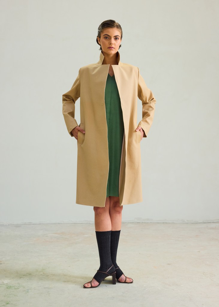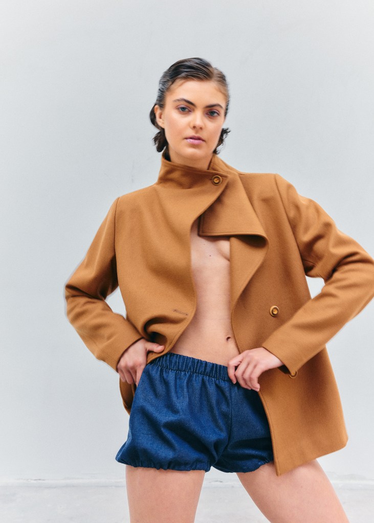 At the heart of the narrative is a sensory breakthrough: Cocoa Leather. Born from the discarded husks of the Peruvian cocoa industry, this bio-based textile represents the pinnacle of what Grâtteau defines as „New Luxury.“ It is a material that doesn’t just sit on the skin; it breathes with it, carrying the olfactory and tactile history of the rainforest into the brutalist geometry of the European metropolis.