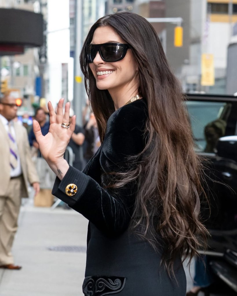 In an era where fashion constantly looks forward, Anne Hathaway proves that sometimes the most powerful statements come from the past. Stepping out for a late-night appearance in New York, the actress turned heads in a rare vintage piece from Versace’s Fall/Winter 1991 collection—an era defined by bold silhouettes, unapologetic glamour, and the unmistakable supermodel energy of the early ‘90s.